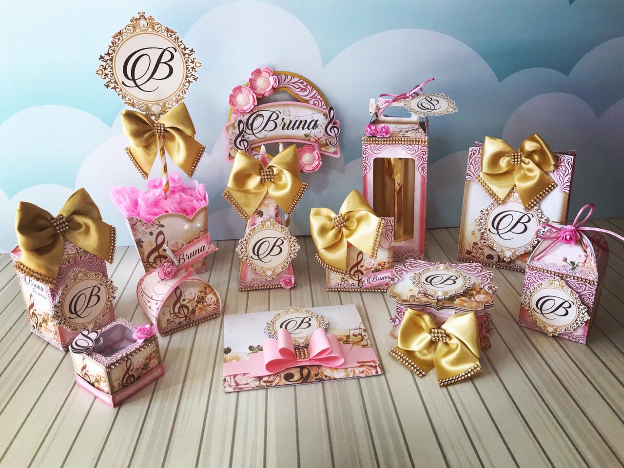 CONTÊM: CAIXA MILK, CAIXA BEM CASADO, CAIXA DELICADA, CAIXA ABINHA, CAIXA PARA 1 DOCE, CAIXA CONE, SACOLINHA MEIGA, EMBALAGEM PARA COPO LONG DRINK, SACOLINHA, CENTRO DE MESA, CONVITE E TOPO DE BOLO.