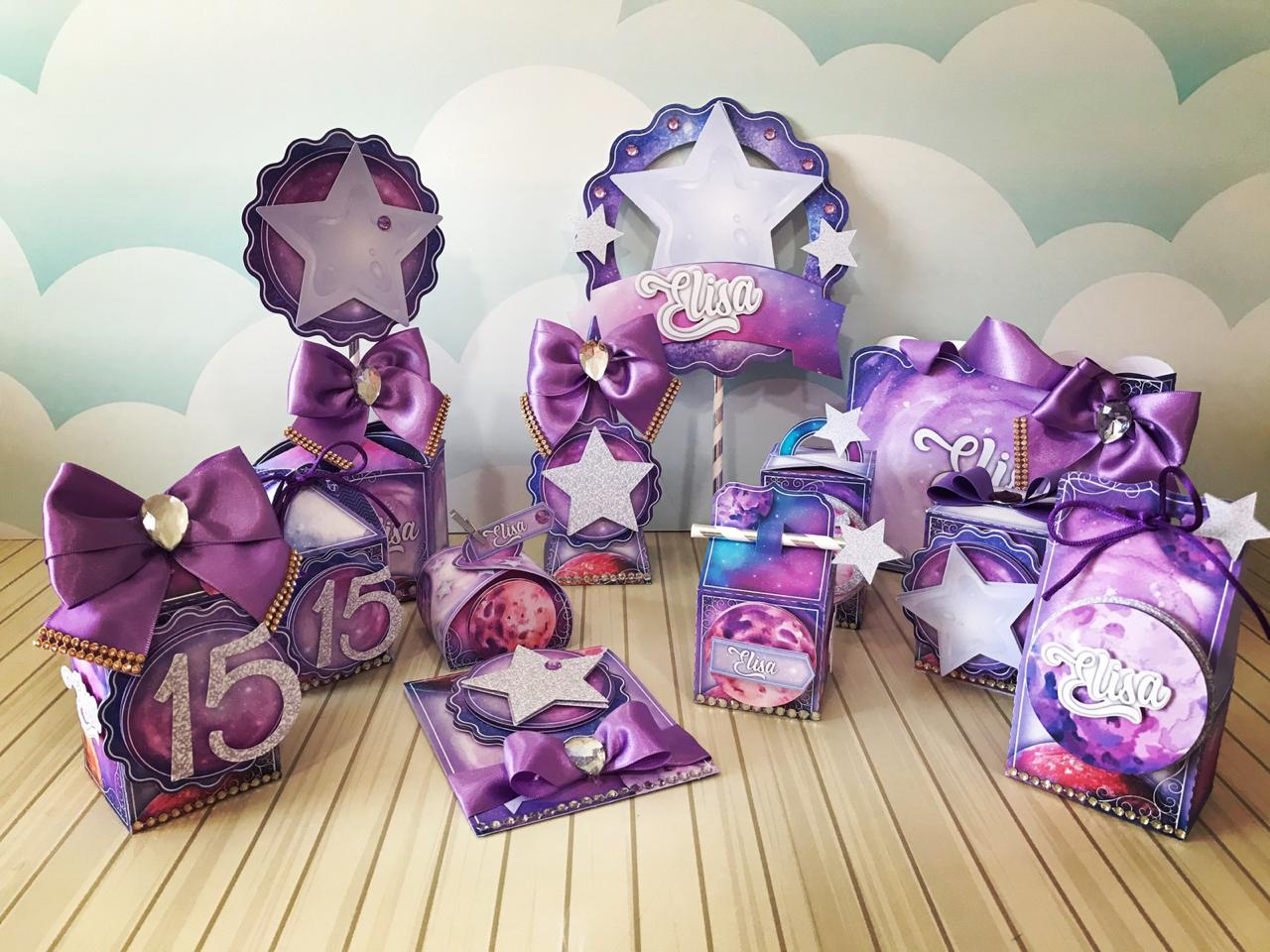 “KIT FESTA 15 ANOS GALÁXIA” 100 % digital, arquivo SILHOUETTE STUDIO + PDF.
