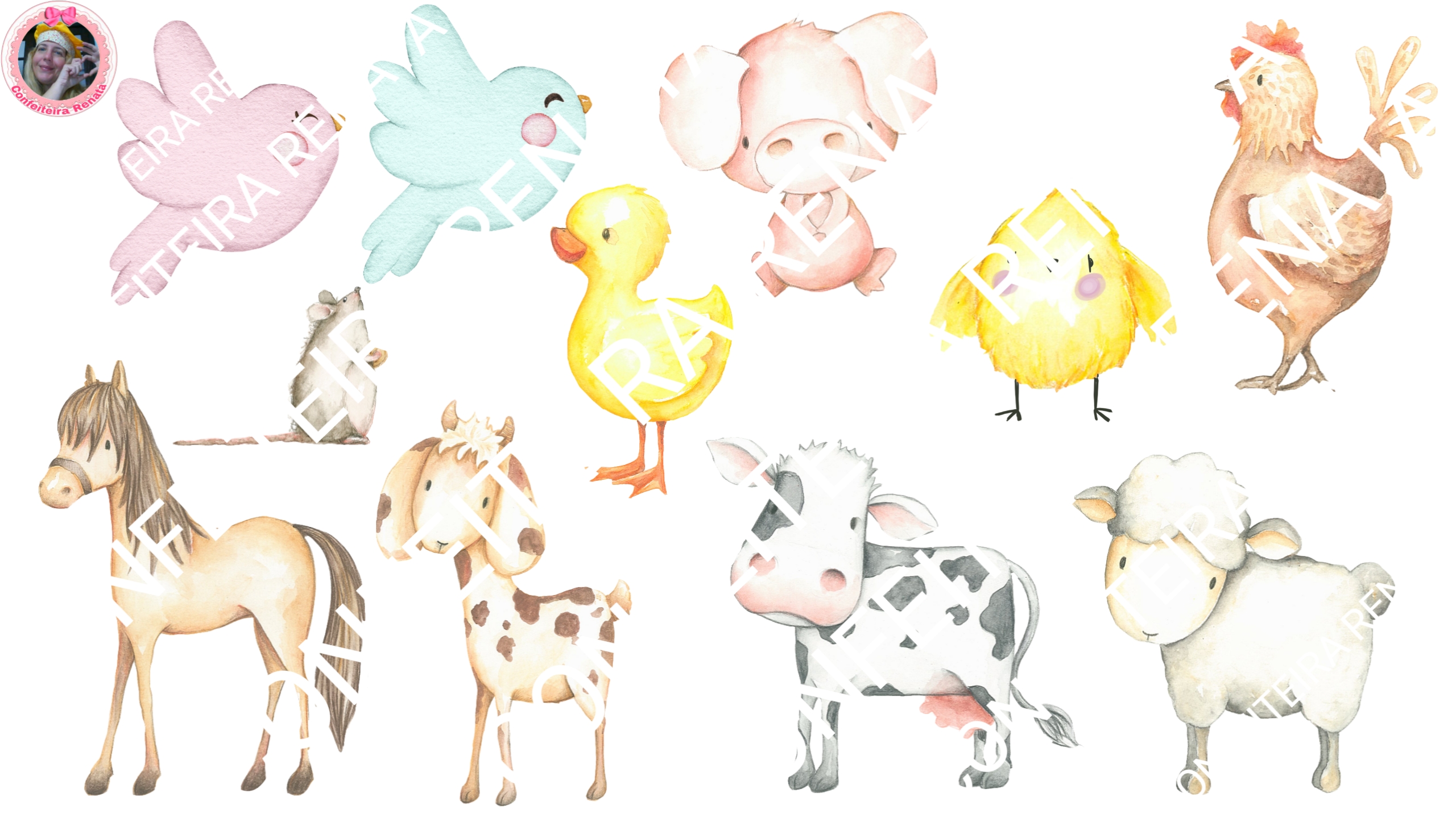 “KIT FESTA FAZENDINHA AQUARELA PARA MENINA E MENINO ROSA E AZUL” 100 % digital, arquivo SILHOUETTE STUDIO + PDF.
