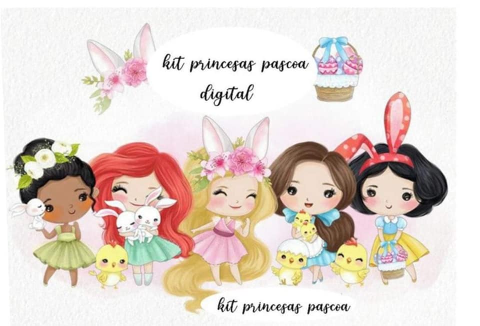“KIT FESTA PÁSCOA PRINCESAS” 100 % digital, arquivo SILHOUETTE STUDIO + PDF + ELEMENTOS PRINCESAS.