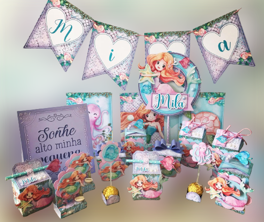 “KIT SÓ UM BOLINHO SEREIA” 100 % digital, arquivo SILHOUETTE STUDIO + PDF.