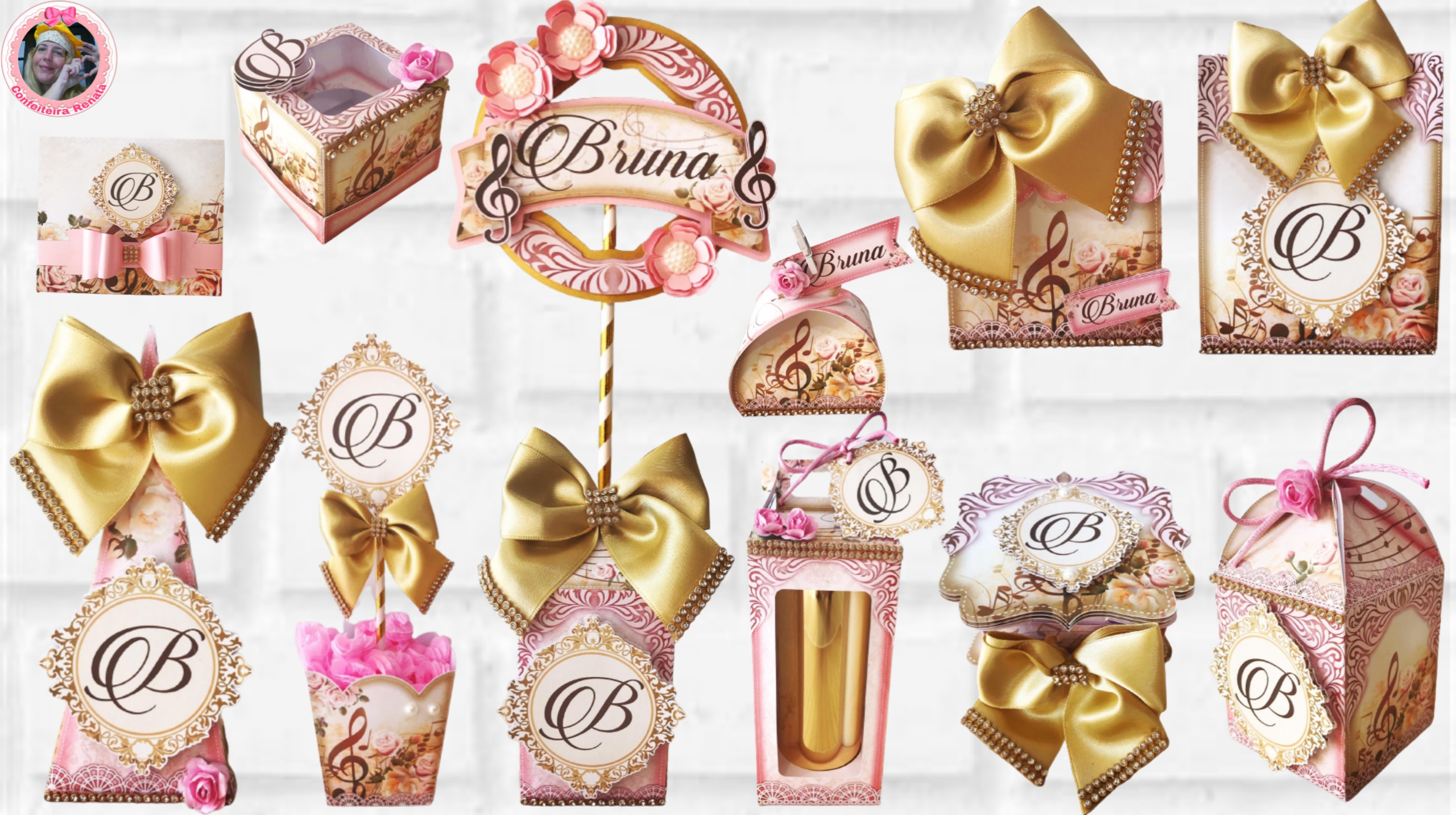 CONTÊM: CAIXA MILK, CAIXA BEM CASADO, CAIXA DELICADA, CAIXA ABINHA, CAIXA PARA 1 DOCE, CAIXA CONE, SACOLINHA MEIGA, EMBALAGEM PARA COPO LONG DRINK, SACOLINHA, CENTRO DE MESA, CONVITE E TOPO DE BOLO.