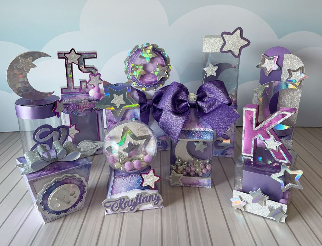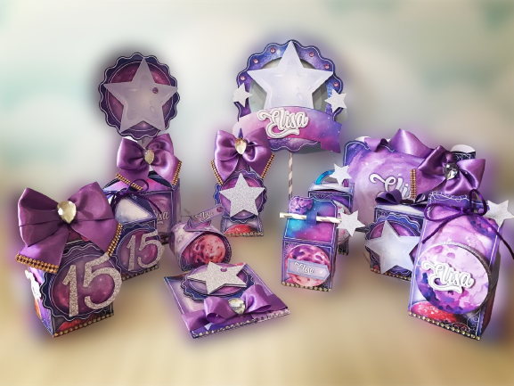 “KIT FESTA 15 ANOS GALÁXIA” 100 % digital, arquivo SILHOUETTE STUDIO + PDF.