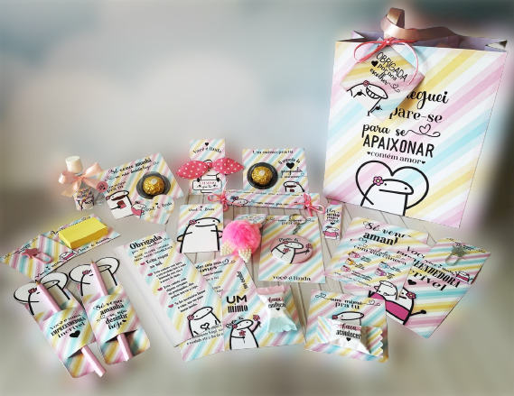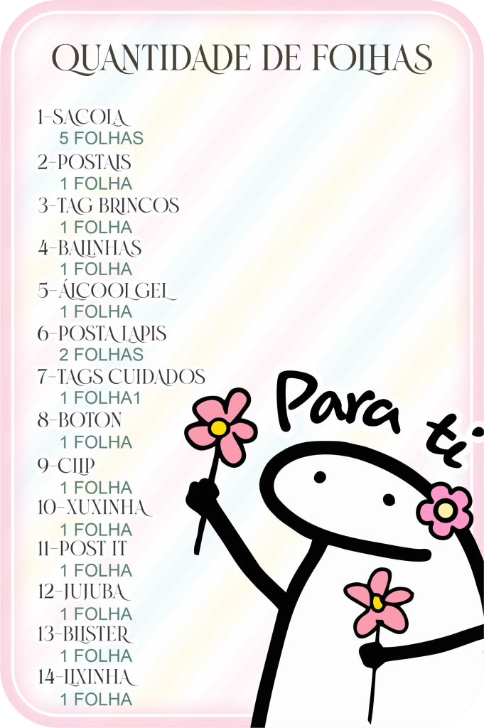 CONTÊM: SACOLA, POSTAIS, TAG BRINCOS, BALINHAS, ÁLCOOL GEL, PORTA LÁPIS, TAGS CUIDADOS, BOTON, CLIP, XUXINHA, POST IT, JUJUBA, BLISTER, LIXINHA, FONTES E FOTOS.