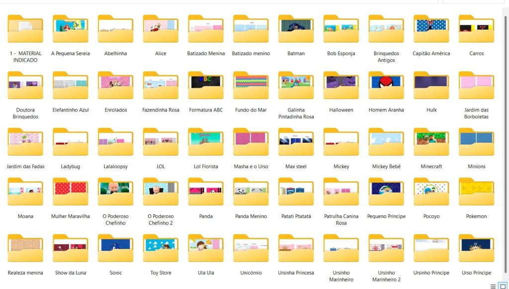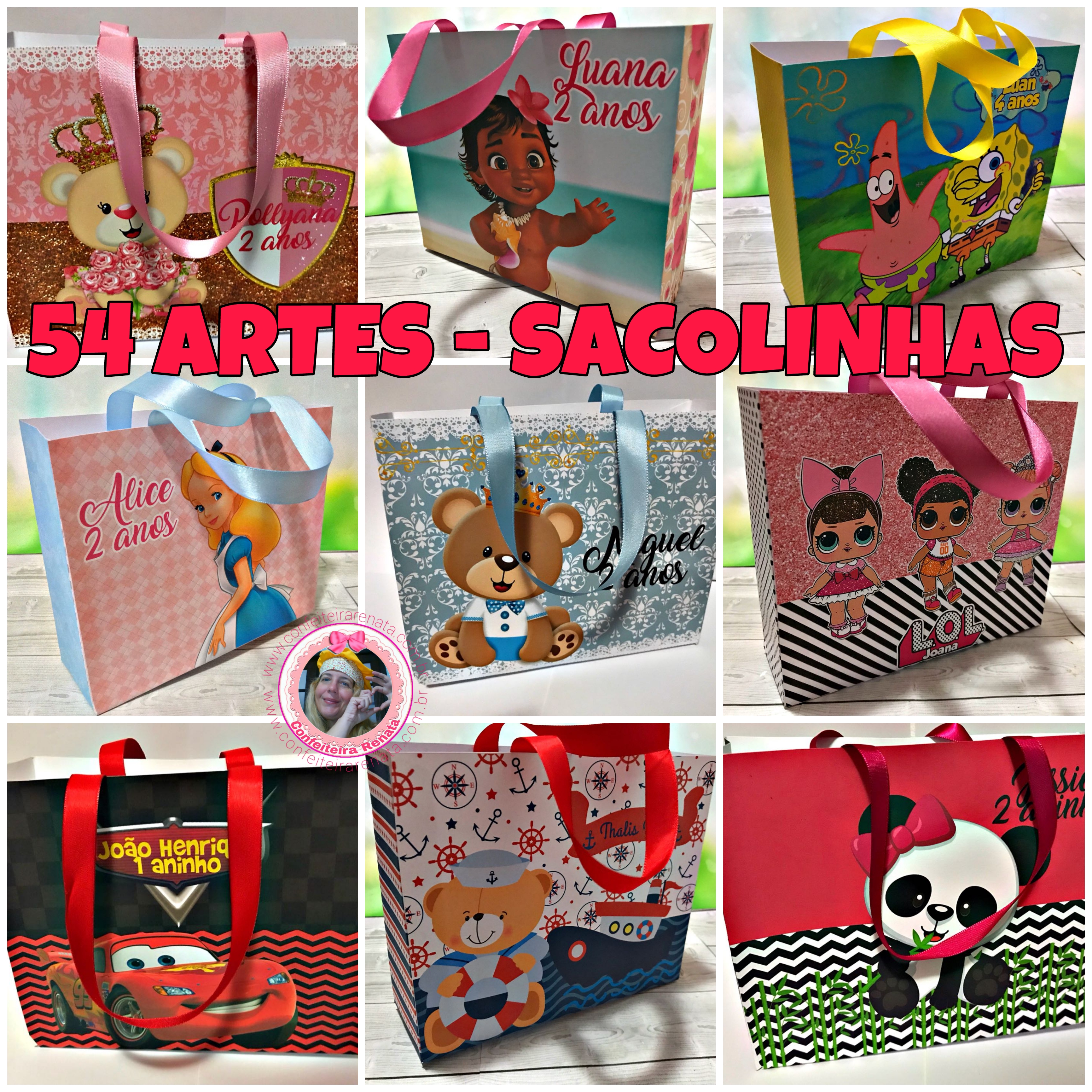 CONTÊM: 54 ARTES – SACOLINHAS VÁRIOS TEMAS PARA LEMBRANCINHA DE FESTA INFANTIL.