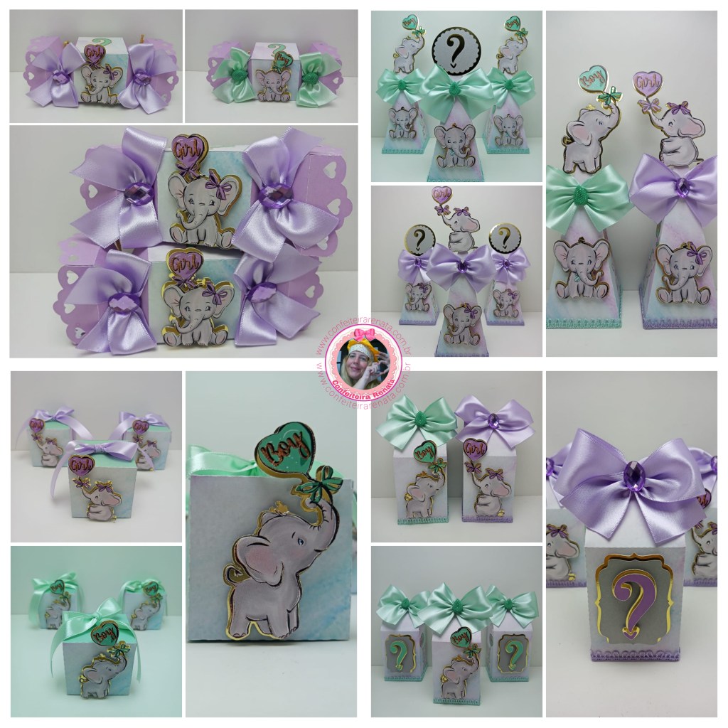 Kit Festa Chá Revelação Elefantinho Lilás e Verde Arquivo de Corte em PDF, PNG e Studio