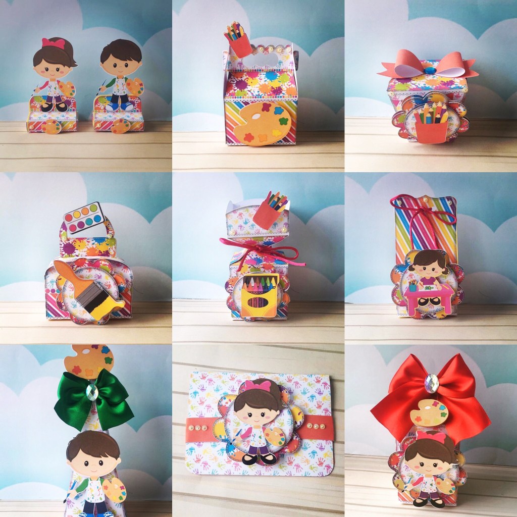 CONTÊM: CAIXA MILK, CAIXA MEIA BALA, MALETA, CAIXA SUSHI, PORTA BIS DUPLO, CAIXA CONE, MALINHA, SACOLINHA, TOPO DE BOLO, CENTRO DE MESA, SACOLA, CONVITE, FONTE, ELEMENTOS E FOTOS.