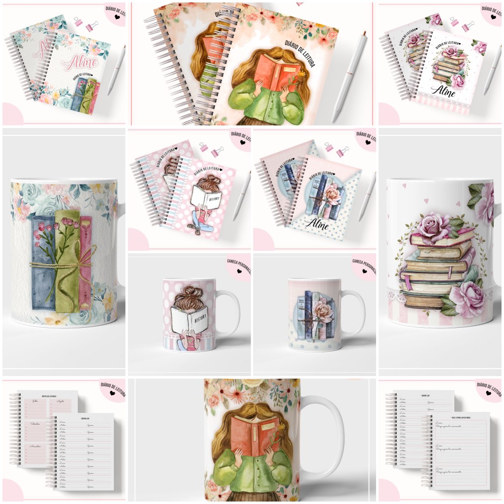 Kit Diário de Leitura (canecas, diários,…) Arquivo Digital em PNG e PDF