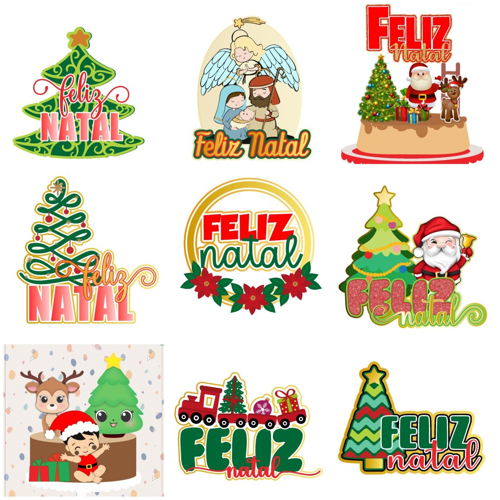 Arquivo de Corte Topo de Bolo Natal 100 % arquivo digital, apenas no formato SILHOUETTE STUDIO. CONTÊM: 20 MODELOS DE TOPOS DE BOLO NATALINO COM MOCKUP.