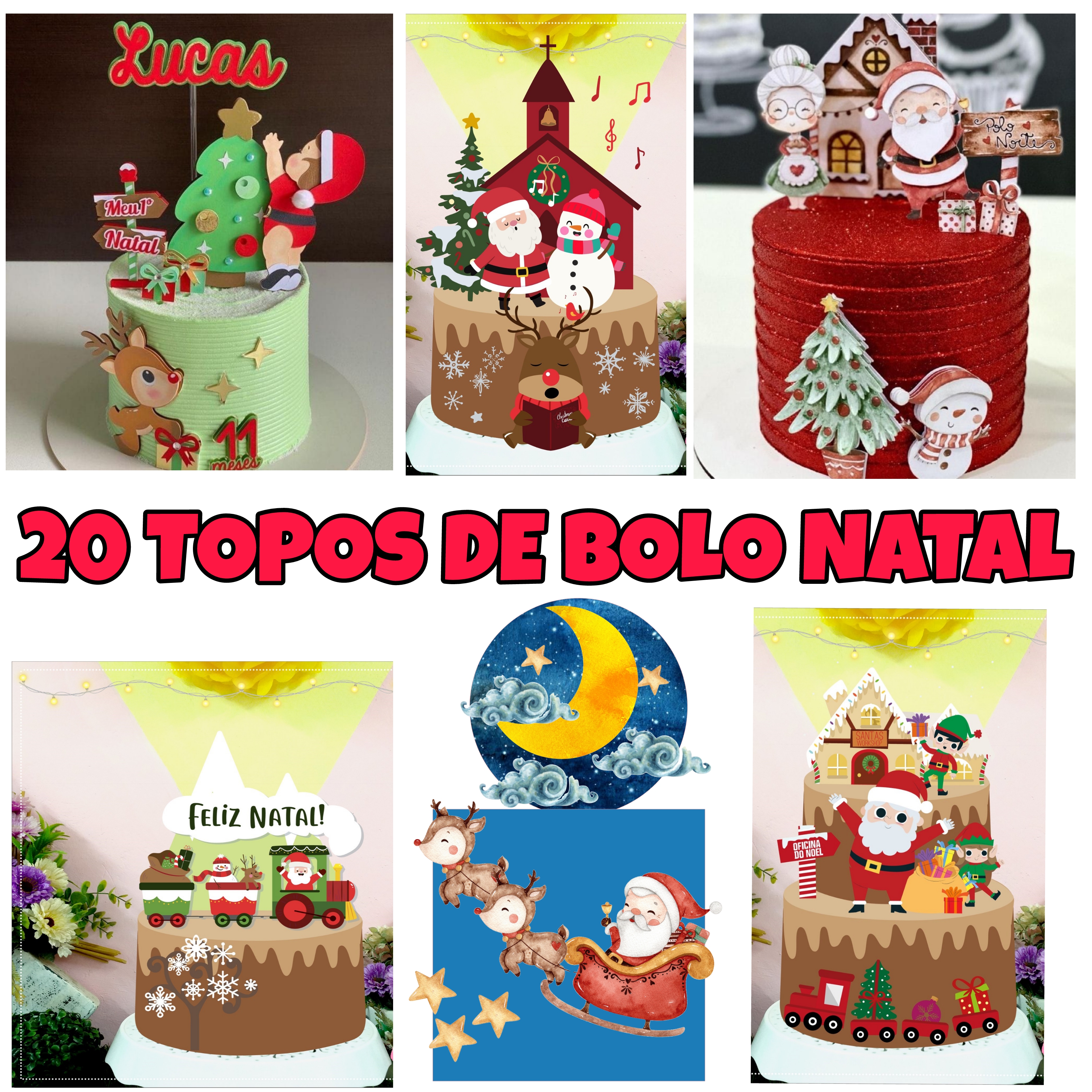 CONTÊM: 20 MODELOS DE TOPOS DE BOLO NATALINO.