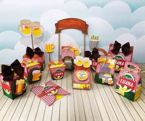 CONTÊM: CAIXA MILK, CAIXA SUSHI, SACOLINHA, PORTA LATINHA, SACOLINHA FOFA, CAIXA CUBO ALTA, PORTA EMBALAGEM ACRÍLICA, BOLSINHA TRAVESSEIRO, CENTRO DE MESA, TOPO DE BOLO, SACOLA, CONVITE, FONTE, ELEMENTOS E FOTOS.
