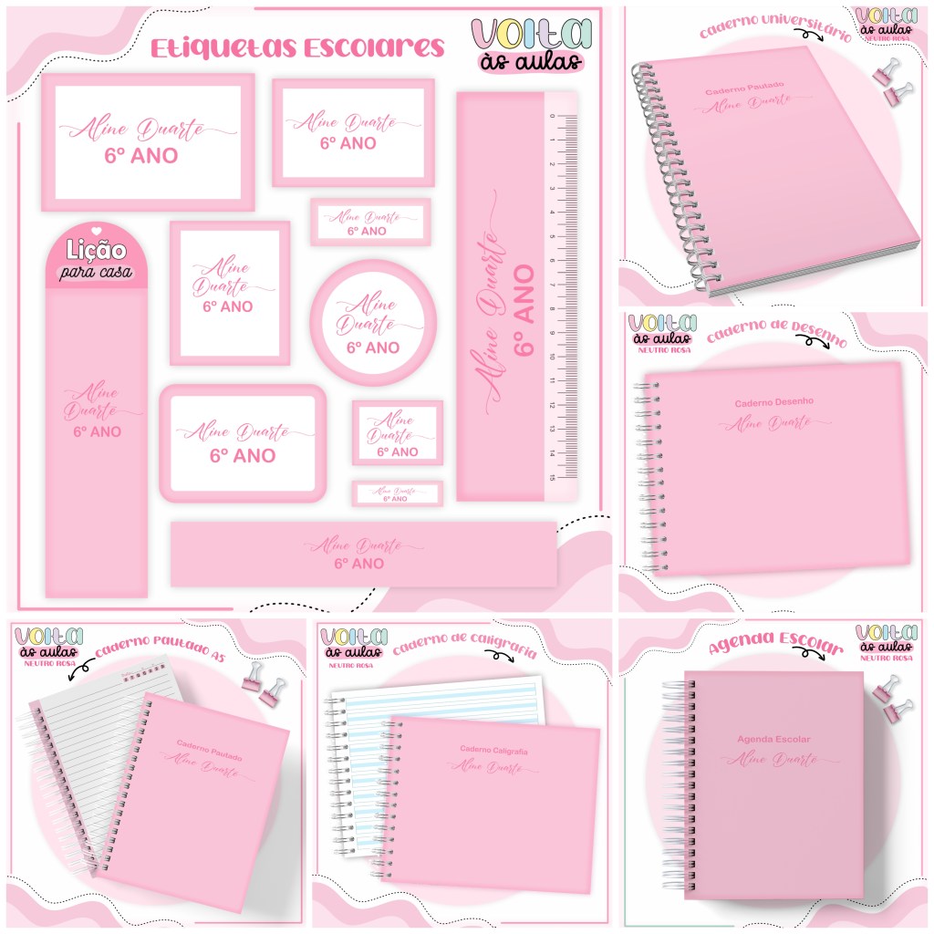 Kit Volta às Aulas Neutro Rosa Etiquetas Escolares e Encadernação 2024 e 2025