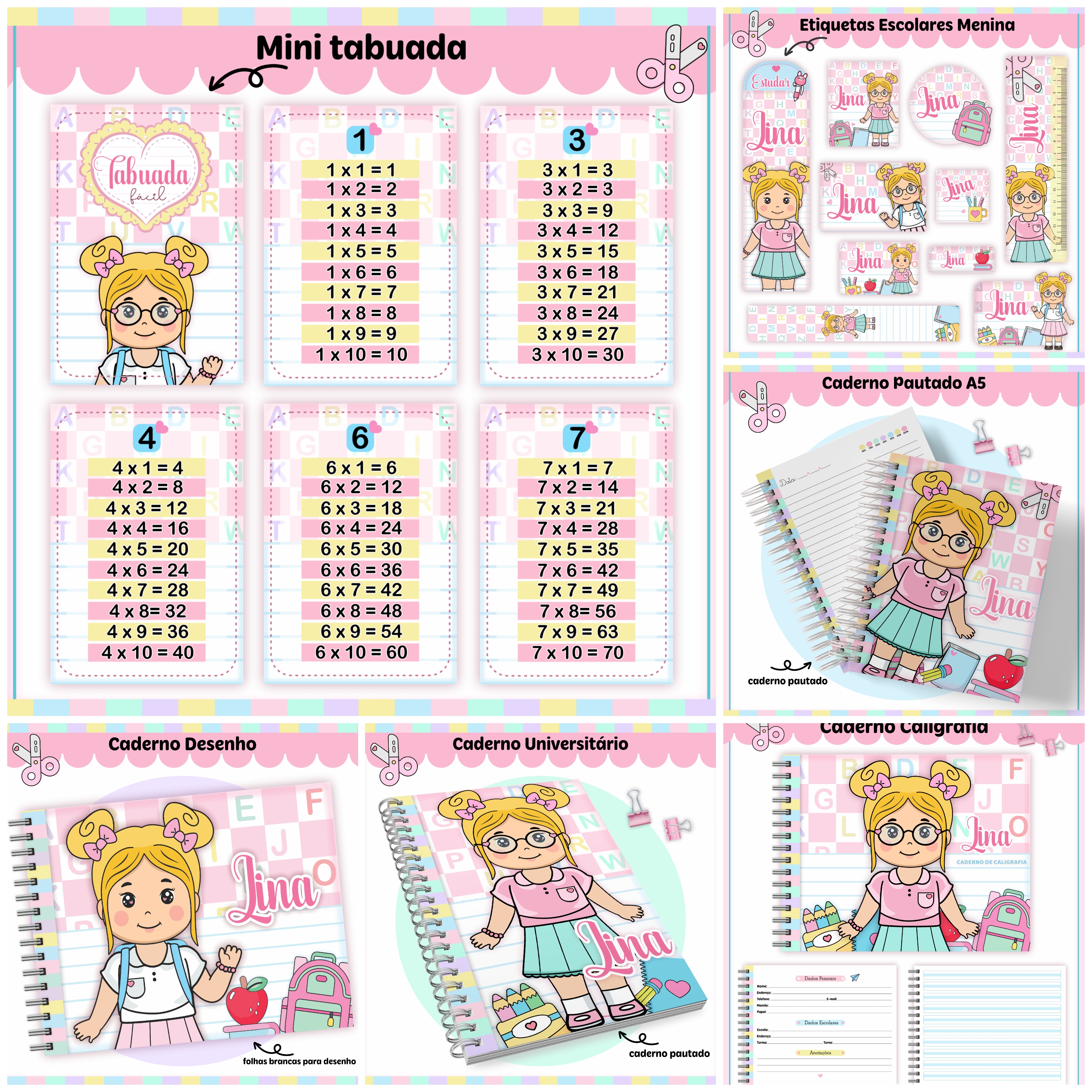 Kit Volta às Aulas Aluninhas Etiquetas Escolares e Encadernação