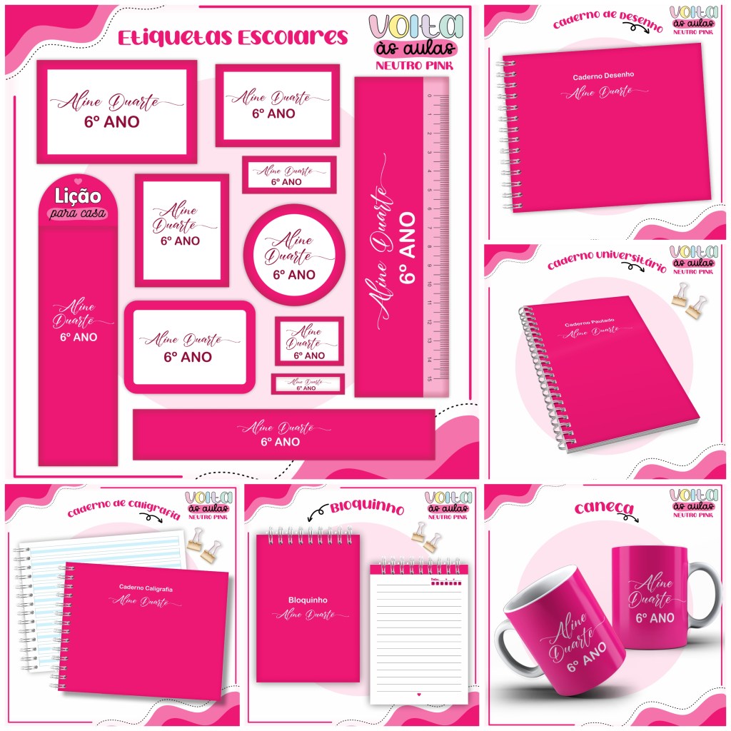 Kit Volta às Aulas Neutro Pink Etiquetas Escolares e Encadernação 2024 e 2025