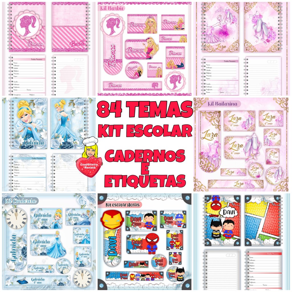 84 Temas Volta às Aulas – Combo Etiquetas Escolares e Cadernos