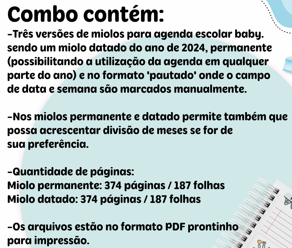 Kit Agenda Escolar Baby 2024 e Sem Data Permanente