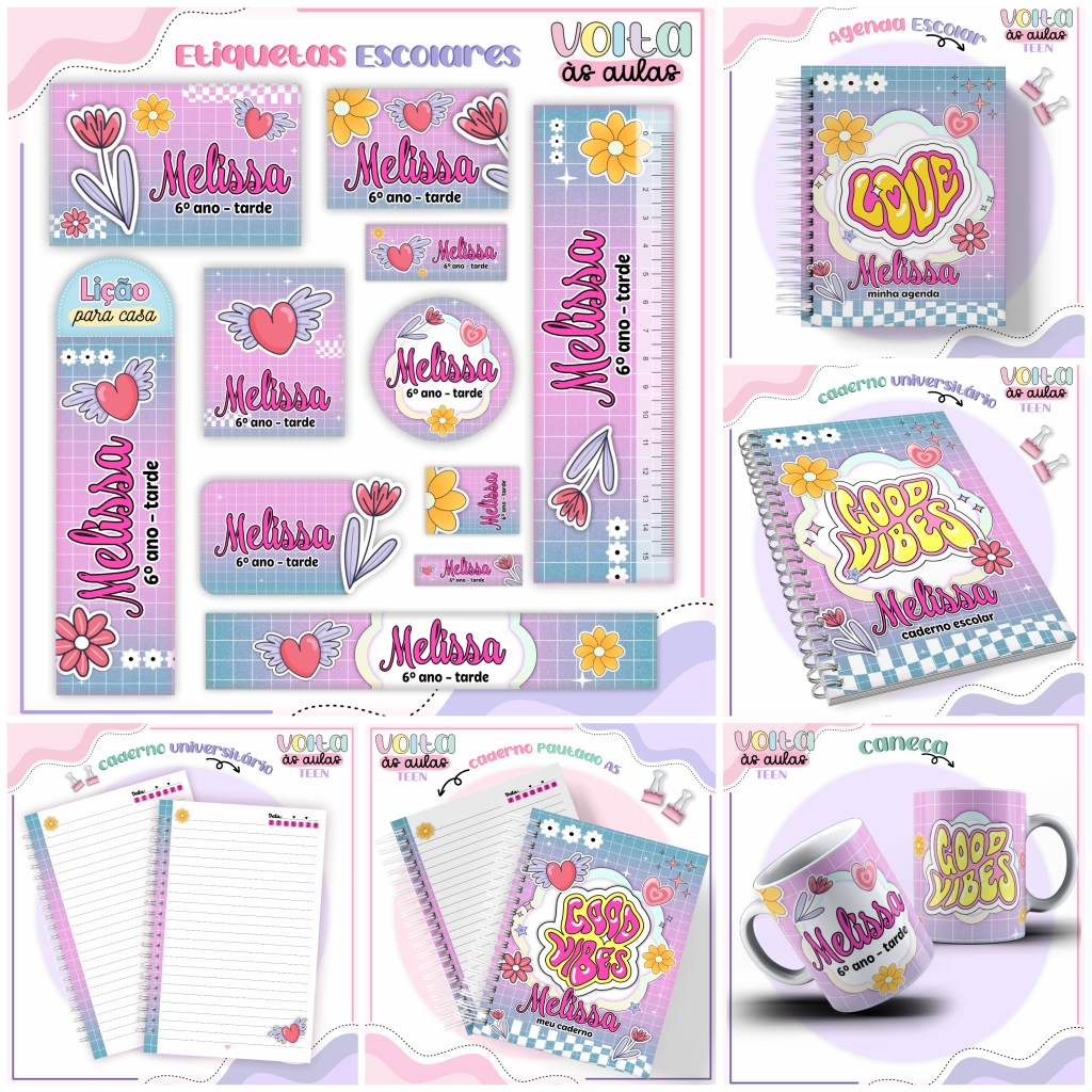 Kit Volta às Aulas Teen Menina Etiquetas Escolares e Encadernação 2024 e 2025