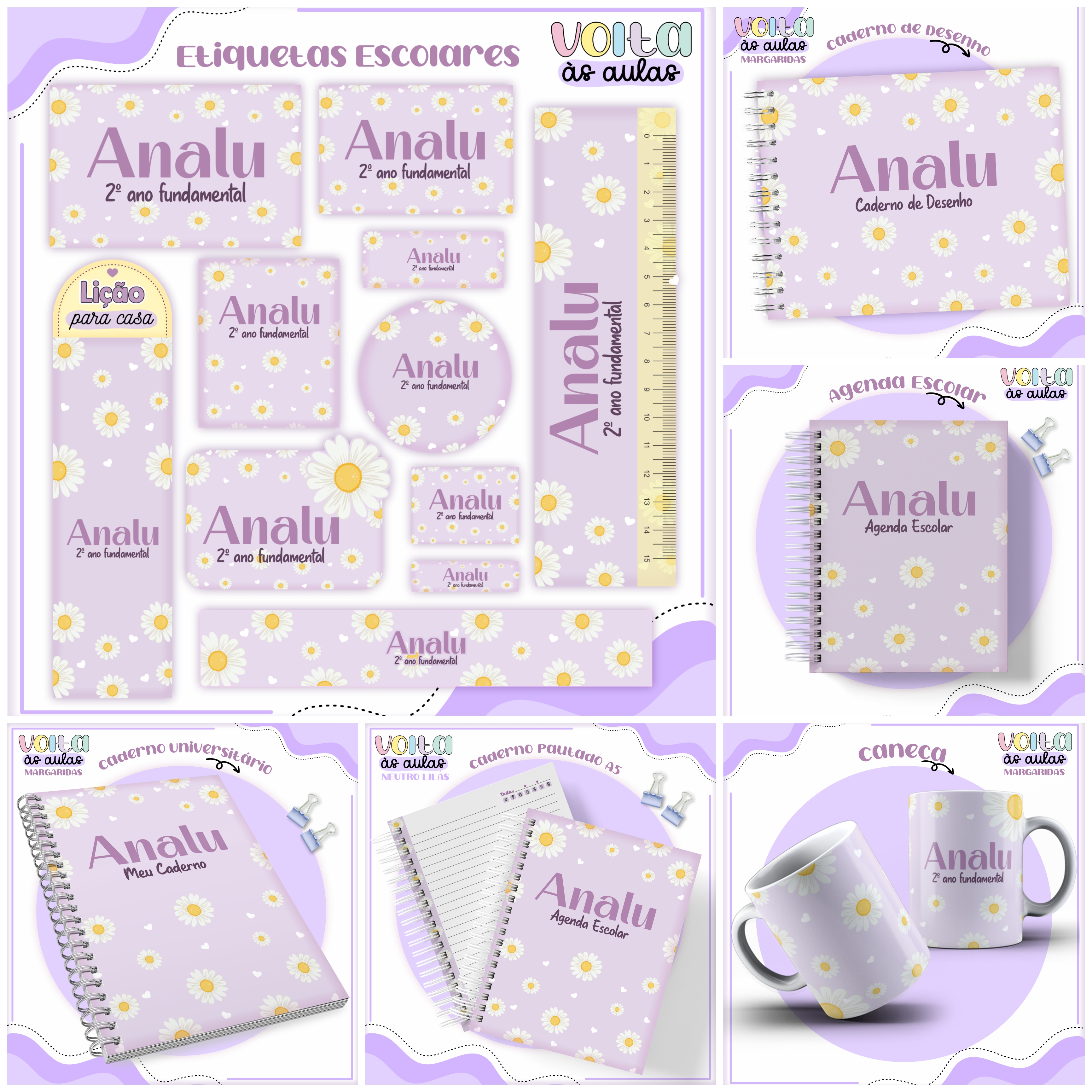 Kit Volta às Aulas Margaridas Etiquetas Escolares e Encadernação 2024 e 2025