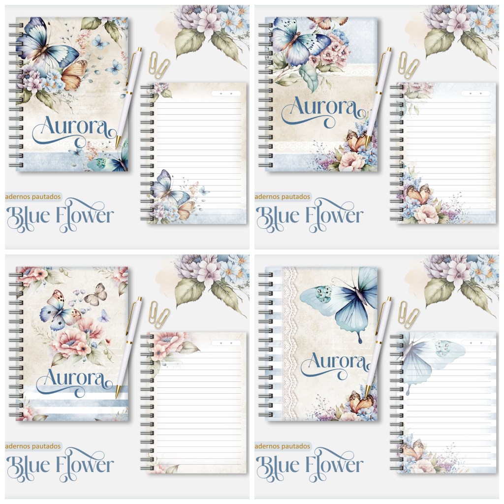 Pack Cadernos e Canecas Blue Flowers 100% Arquivo Digital em Png e Pdf