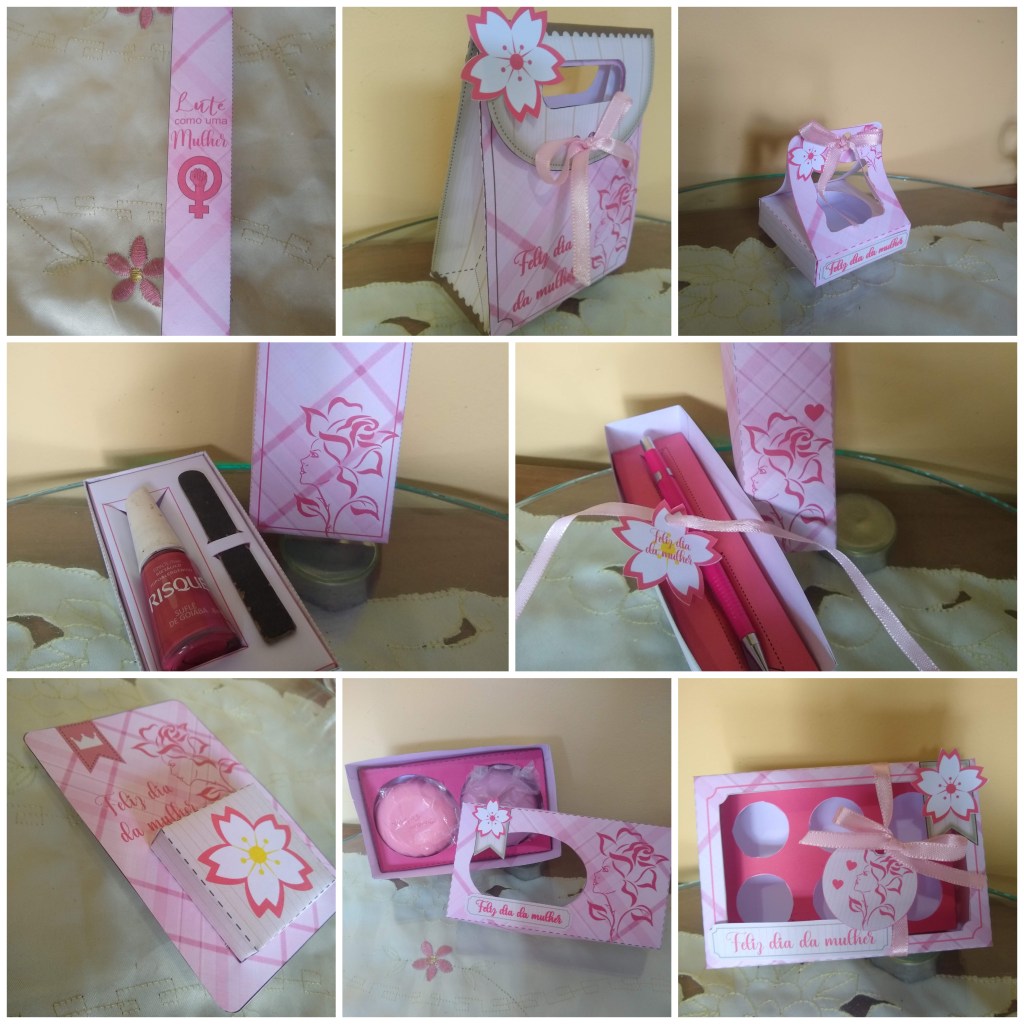 CONTÊM: CARTÃO PORTA BIS, CAIXA PARA 1 CANETA, CAIXA PARA 1 SABONETE, CAIXA PARA 2 SABONETES, CAIXA PARA 6 DOCES, PORTA BOMBOM, PORTA ESMALTE E LIXA, PORTA LIXA, SACOLINHA PARA PRESENTE, TOPO DE BOLO SIMPLES E FOTOS.