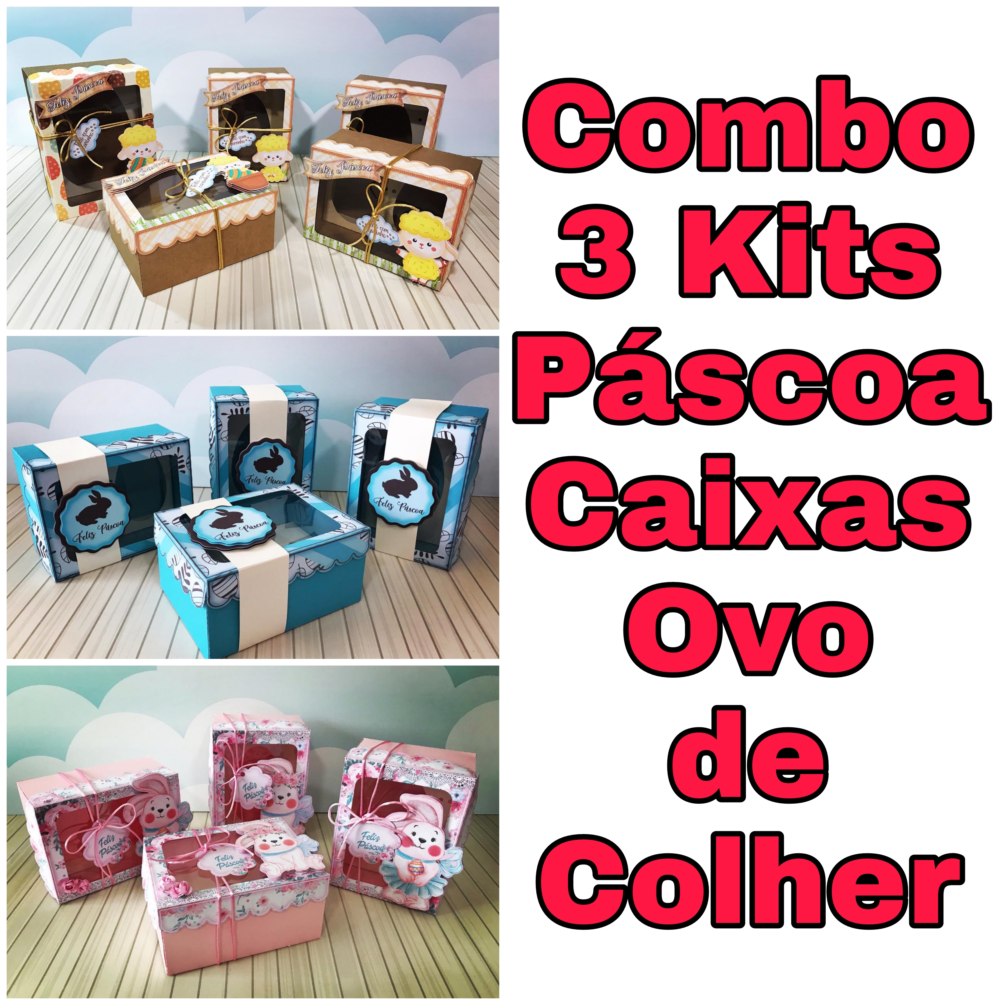 Combo 3 Kit Páscoa Caixa Ovo de Colher Arquivo Digital em Studio e PDF