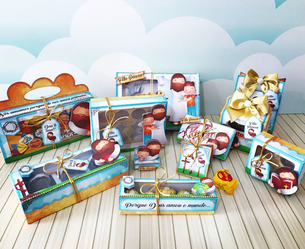 CONTÊM: CAIXA PARA KIT KAT, EMBALAGEM PARA CAIXA BOMBOM, CAIXA PARA 5 DOCES, CAIXA PARA 3 POTINHOS DE VIDRO, SACOLINHA FOFINHA, CAIXA BIS DUPLO, CAIXA PARA 4 DOCES, CAIXA PARA 12 DOCES, PORTA NUTELLA, CAIXA MIN CONFEITEIRO, SACOLA E FOTOS.