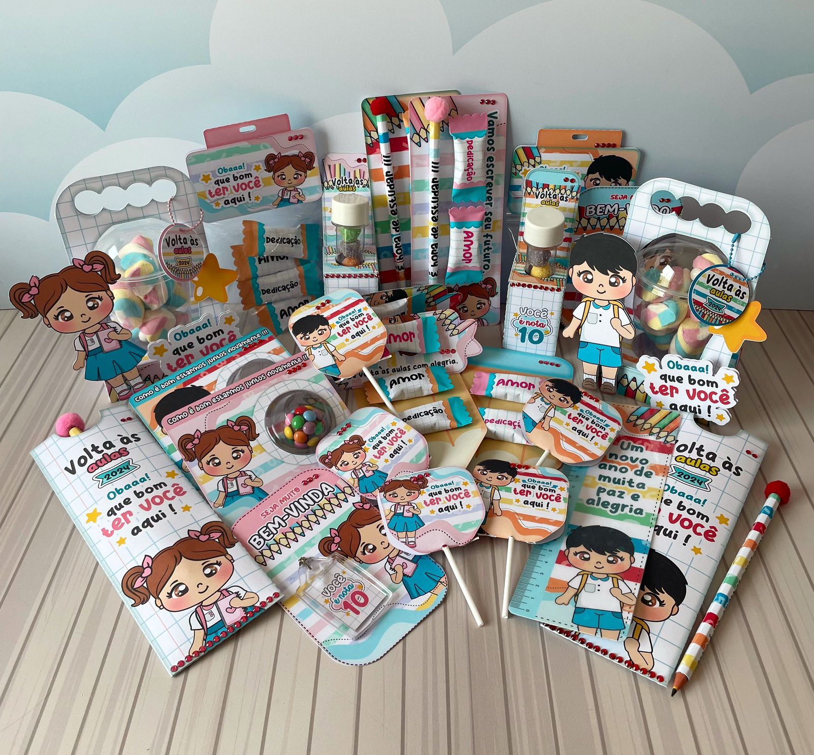 Kit Mimos Volta às Aulas Menina e Menino Arquivo Digital em Studio e PDF