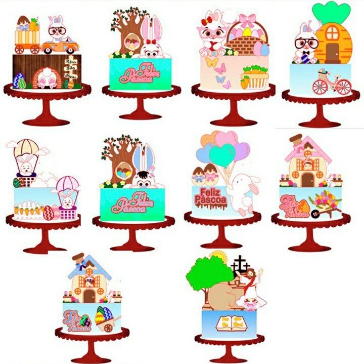 CONTÊM: 10 MODELOS DE TOPOS DE BOLO PÁSCOA.