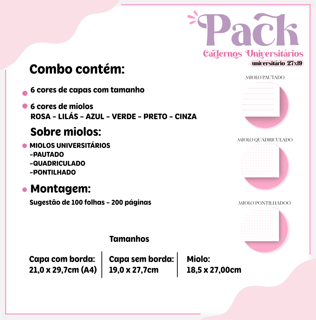 Pack Cadernos Universitários Arquivo Digital em PNG e PDF