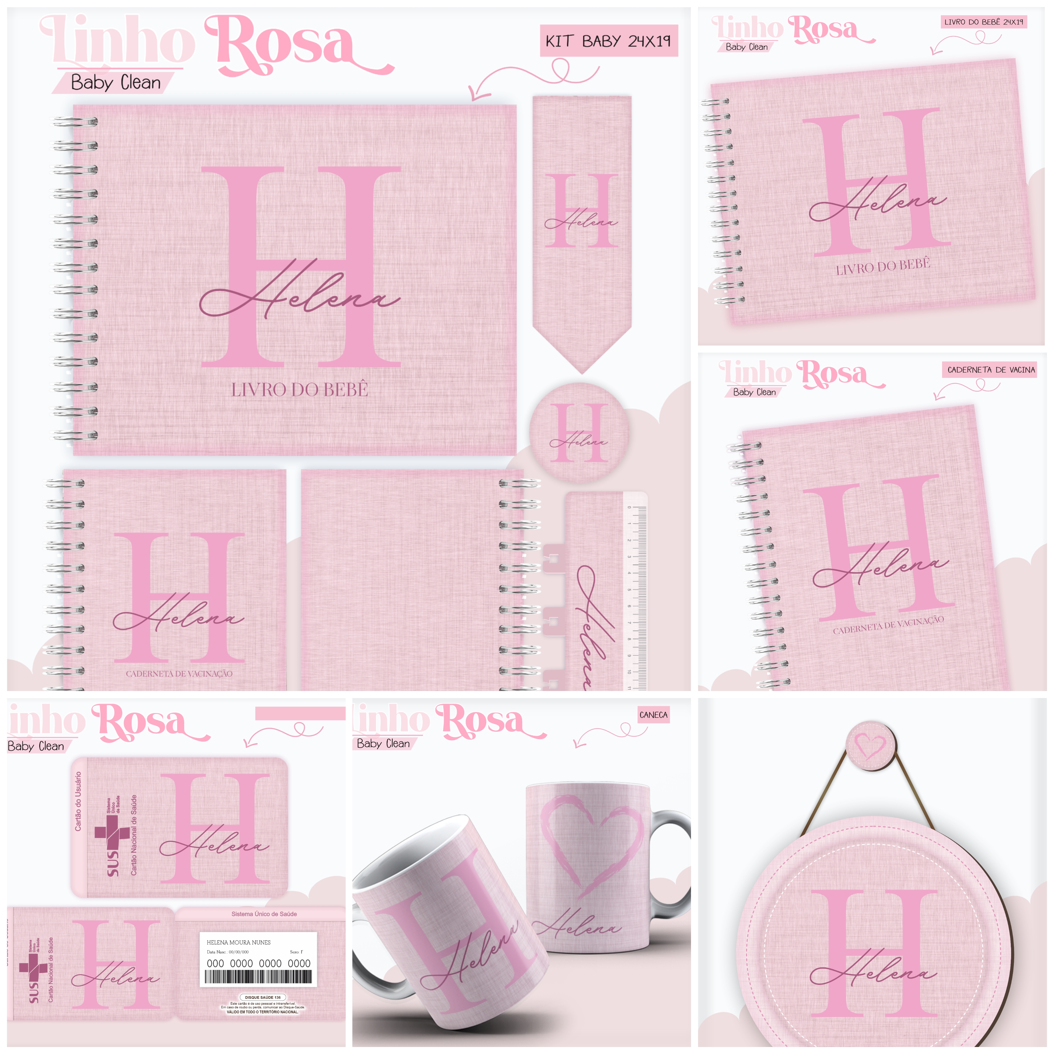Kit Baby Linho Rosa Inicial – Livro do Bebê, Livro Mesversário, Álbum de Recordações, Caderneta de Vacinas, Cartão do Sus…