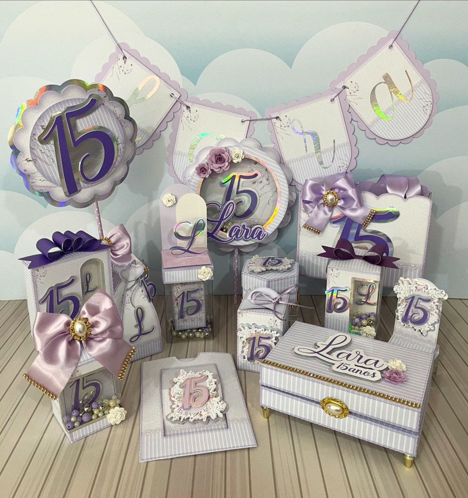 CONTÊM: CAIXA MILK, CAIXA COMPRIDA, CAIXA COM VISOR, CAIXA CENÁRIO, CAIXA BEM CASADO, CAIXA BOLEADA COM TAMPA, CAIXA ALÇA, CAIXA BIS DUPLO, BANDEIROLA, SACOLINHA, CENTRO DE MESA, CONVITE, TOPO DE BOLO, LEMBRANCINHA, FONTE E FOTOS.
