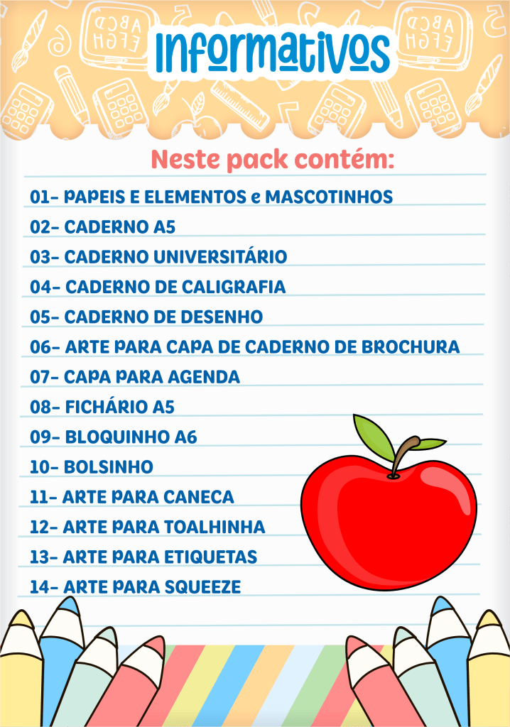 Combo Volta às Aulas Aluninhos 100 % digital, arquivos nos formatos PNG e PDF + KIT DIGITAL / Calendário 2025 e 2026.