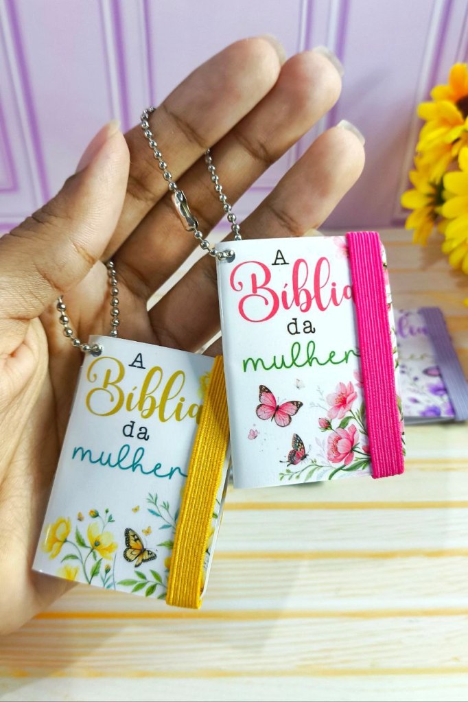*Chaveiro Bíblia da Mulher – contem 4 artes com capa nas cores lilás, amarelo, azul e rosa + miolo.