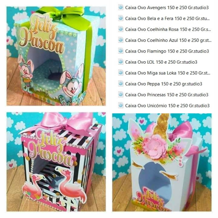 10 Temas – Caixa Ovo em Pé – Ovo Inteiro 150g e 250g Arquivo Digital em Studio