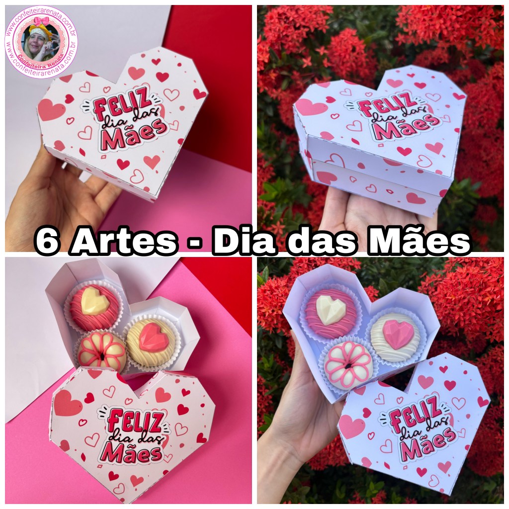 6 Artes – Caixa Coração Dia das Mães Arquivo Digital em PDF e PNG
