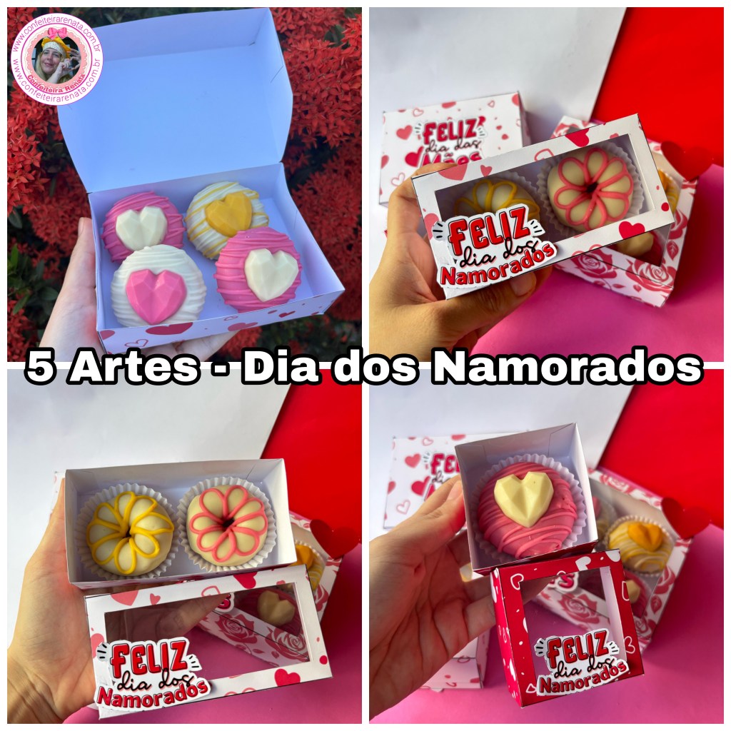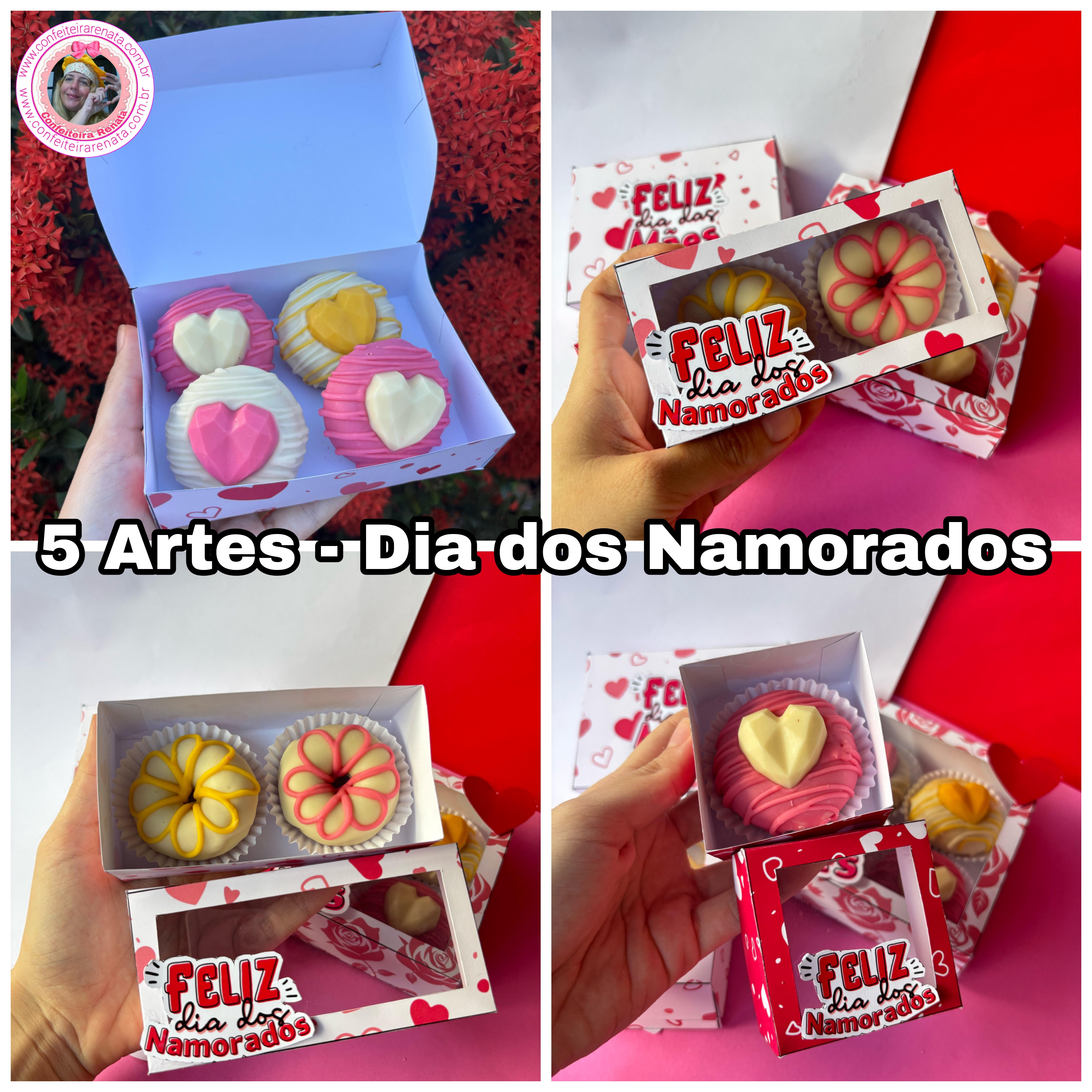 Arquivo de corte Caixas para 1, 2, 3, 4 e 6 Doces ou Donuts com 5 Artes e 6 Moldes Dia dos Namorados com Visor e sem Visor, 100% digital, arquivos nos formatos PNG e PDF e MOLDE LIMPO.