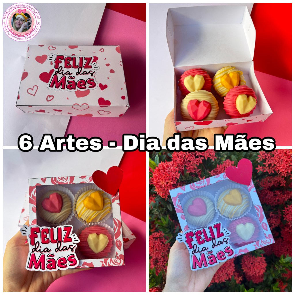 6 Artes e 6 Moldes – Caixas para Doces Dia das Mães Arquivo Digital em PDF e PNG