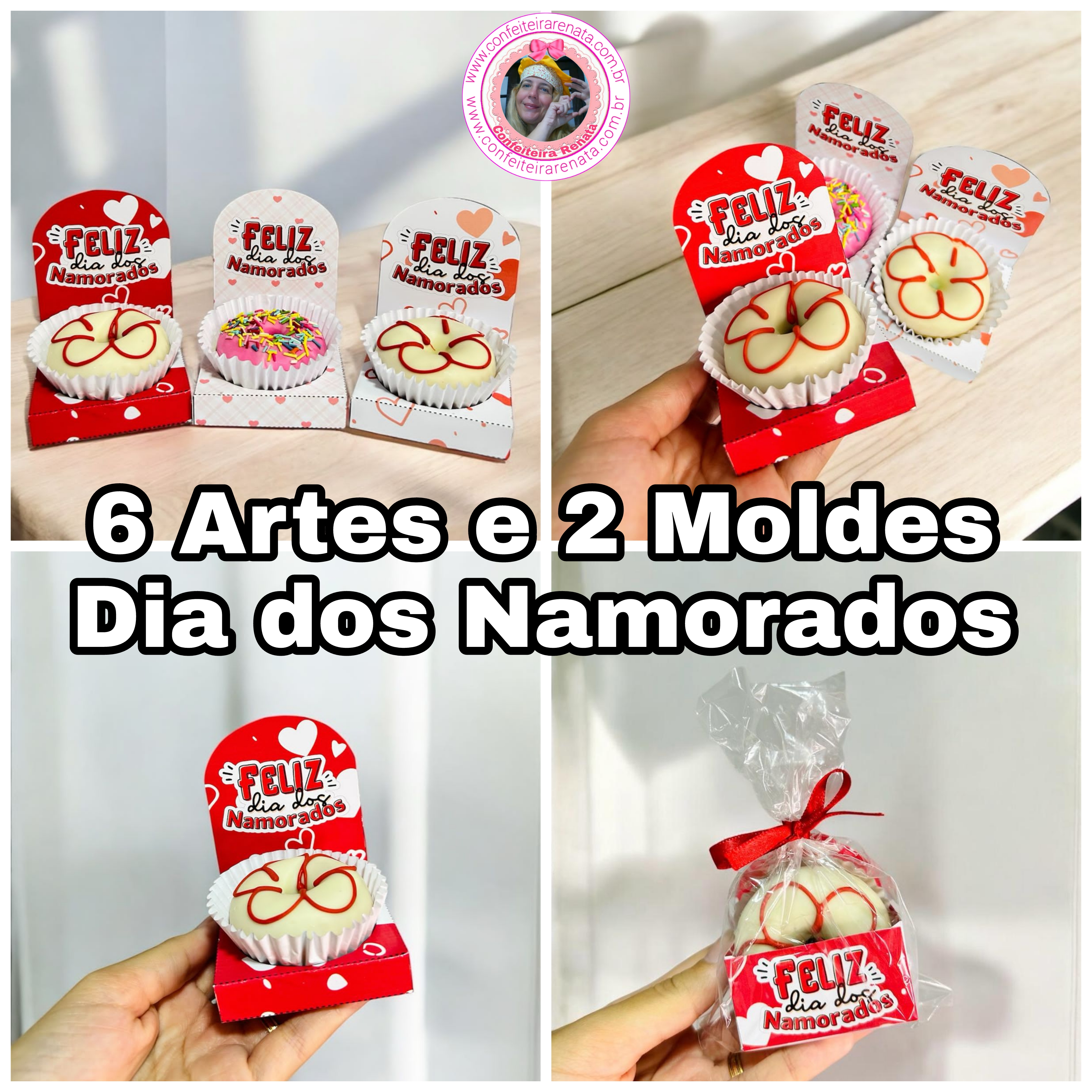 6 Artes e 2 Moldes – Kit Porta Donuts Dia dos Namorados Arquivo Digital em PDF e PNG