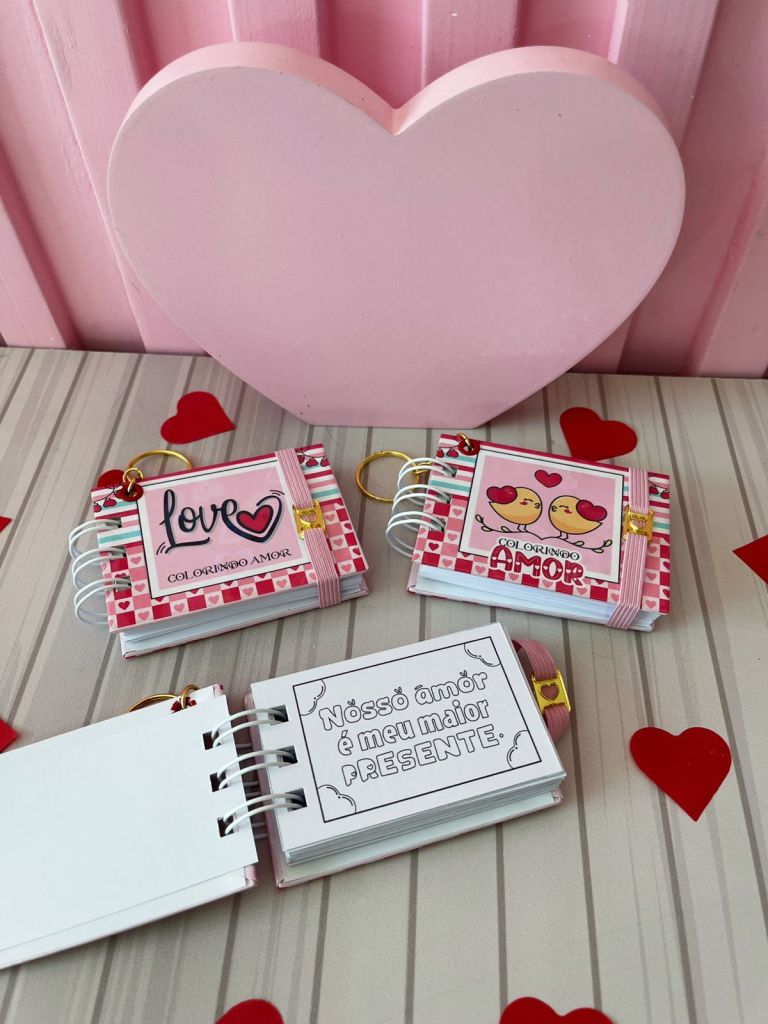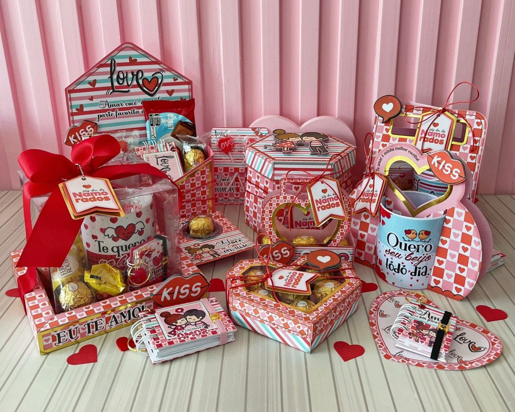 CONTÊM: CAIXA EXPLOSÃO SEXTAVADA, CARD MINI CHAVEIRO, SACOLINHA, PORTA FERREIRO, BOX ENVELOPE, BOX NAMORADOS, PORTA CANECA E ARTE, CAIXA 6 DOCES, CARD BLISTER, CARD PIRULITO, MINI LIVRO DO AMOR, MINI LIVRO DE COLORIR, FONTES, ELEMENTOS E FOTOS.