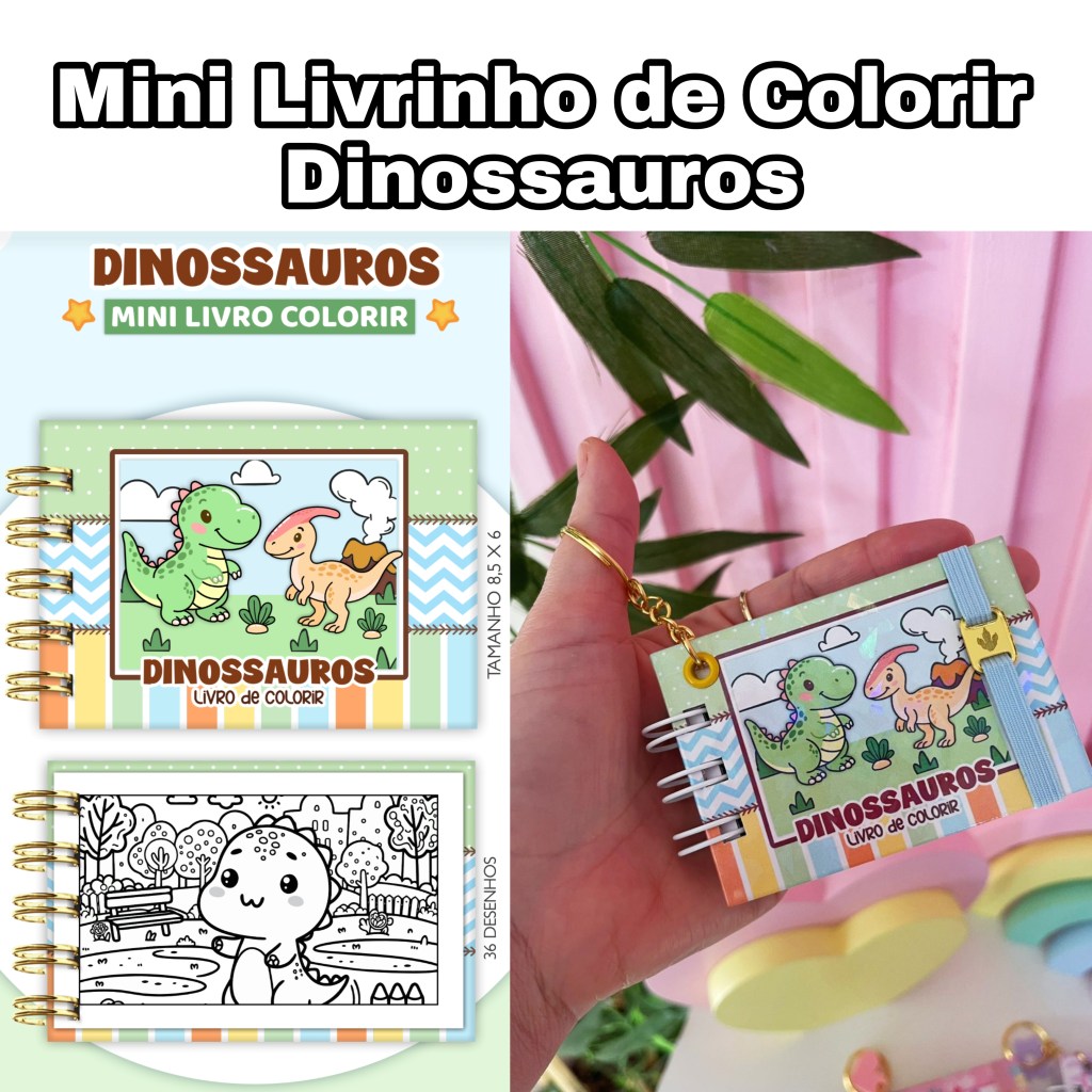 Livrinho para Colorir Dinossauros 100 % arquivo digital em PDF e PNG, 36 Desenhos para Colorir e 1 Capa + Fonte.