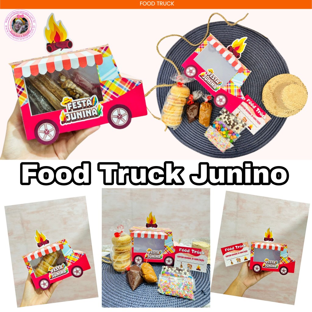 Arquivo de corte Food Truck Junino com visor e 8 Artes, 100% digital, arquivos nos formatos PNG e PDF e Brinde – Lapelas, Tags e Cartões.