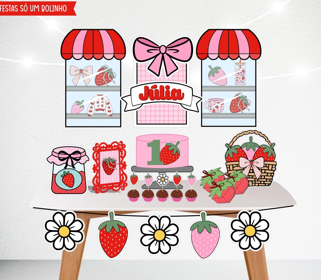 Kit Só um Bolinho Morangos Arquivo Digital em PDF e Studio