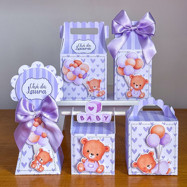 Kit Festa Chá de Bebê Ursinha Lilás Arquivo Digital em Studio, JPG e PDF