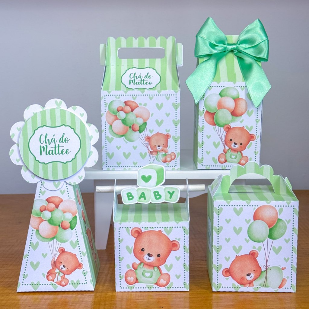 Kit Festa Chá de Bebê Ursinho Verde Arquivo Digital em Studio, JPG e PDF