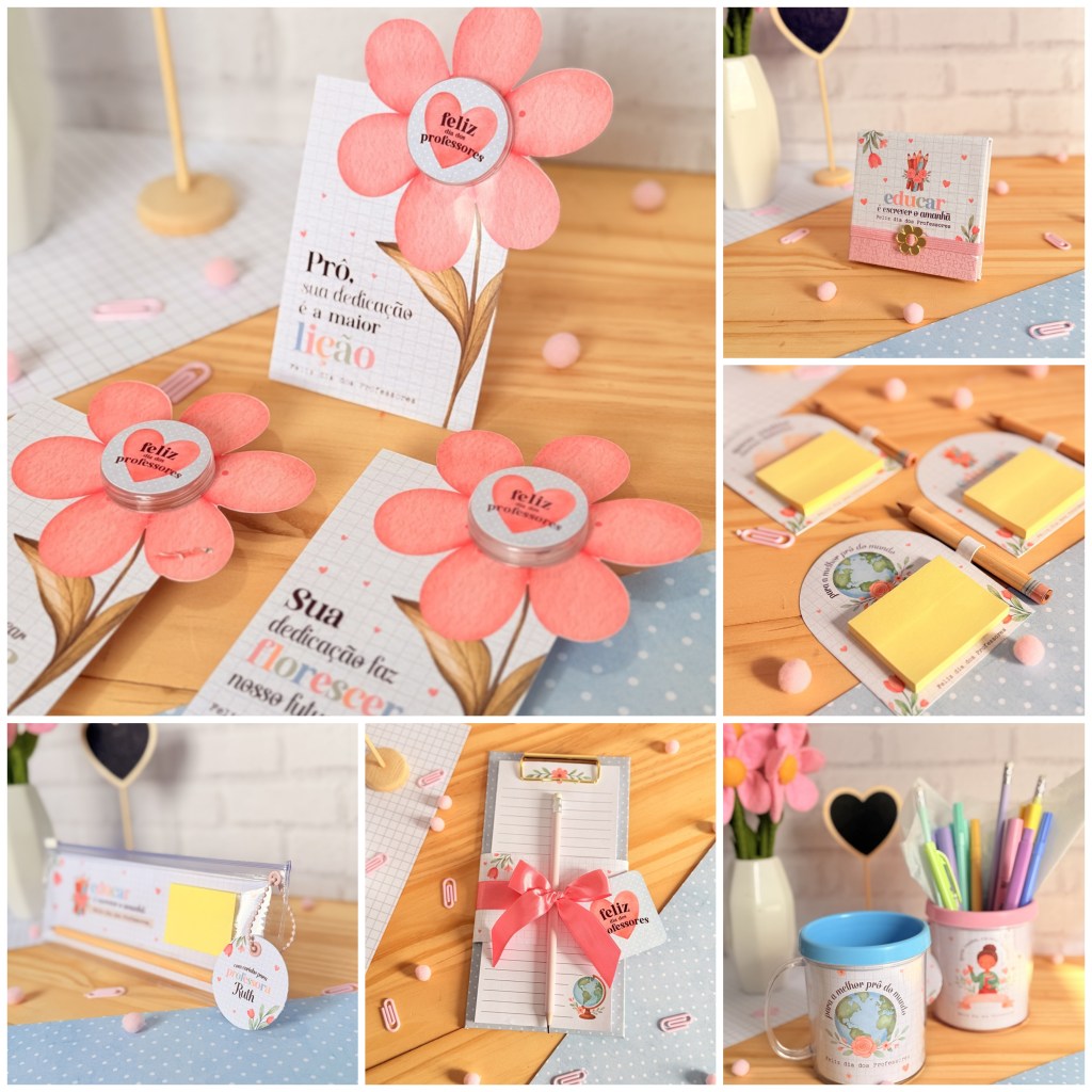 Contém: Artes para capa post it grande, Artes para caneca, Artes para card blister, Artes para card e adesivo creminho, Artes para card e adesivo moedinha, Artes card post it e adesivo lápis, Arte cestinha, Arte para estojo de plástico, Arte marca página acrílico, Arte porta carteira, Arte prancheta bloco, Arte tubolata e balinha, Fotos, Kit Digital e Catálogo.