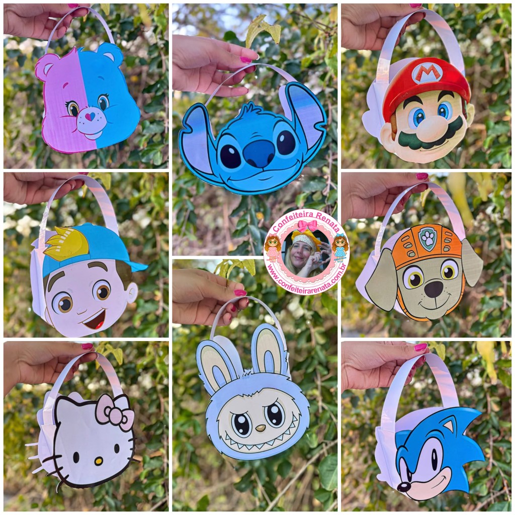 Contém 8 Temas: Ursinho Carinhoso, Lucas, Hello Kitty, Stitch, Labubu, Super Mário, Patrulha Canina, Sonic, fotos e vídeo aula rápido.