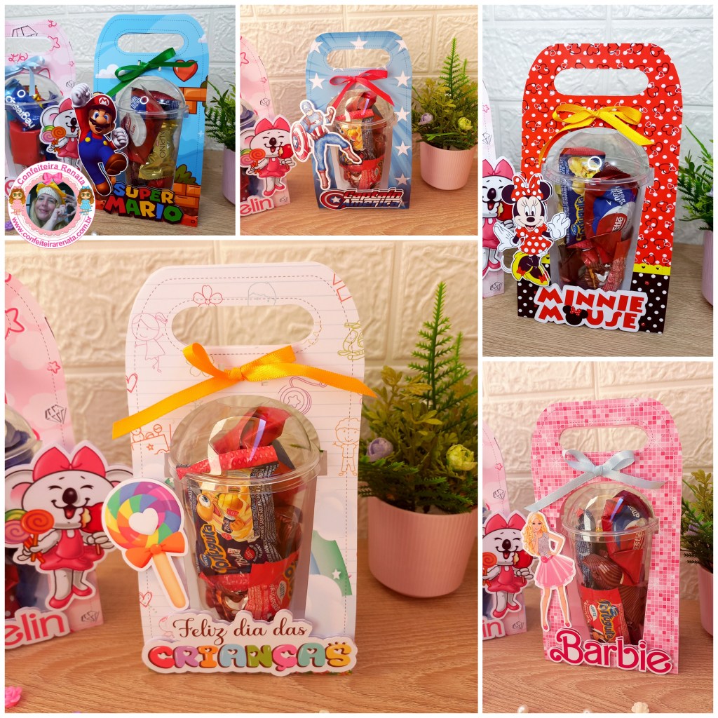 Arquivo de corte Porta Copo Bolha (As medidas do encaixe do copo no arquivo: Altura 13 cm e Largura 8 cm), com 10 artes nos temas: Barbie, Bolofofos Azul, Bolofofos Rosa, Capitão América, Feliz Dia das Crianças, Homem Aranha, Lilica, Minnie Rosa, Minnie Vermelha e Super Mario. 100% arquivo digital apenas no formato Silhouette Studio para computador.