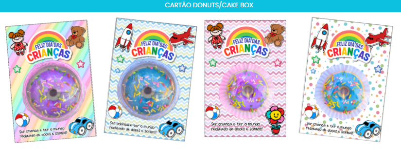 4 Artes – Cartão Donuts ou Cake Box Dia das Crianças Arquivo Digital em PNG e PDF