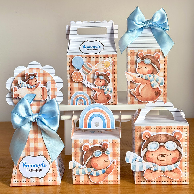 Kit Festa Ursinho Aviador Arquivo Digital em Studio, JPG e PDF