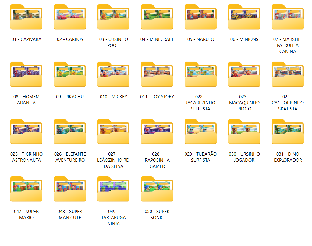 Contem: 4 modelos de etiquetas por tema, são 25 temas para menino, 25 temas para menina e bônus princesas.